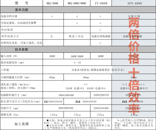 【信成】火花機(jī)詳細(xì)數(shù)據(jù)一覽表