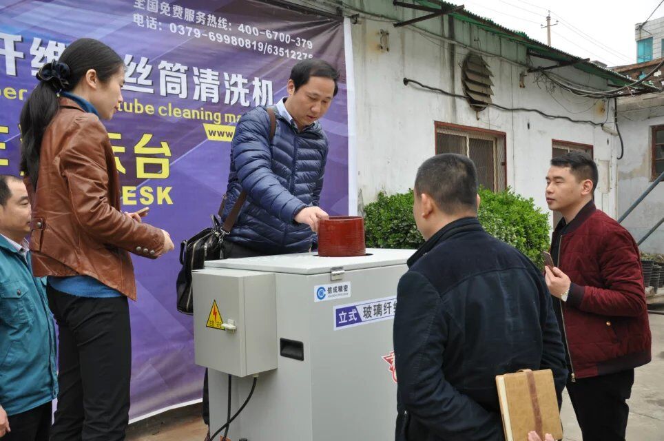 3月15日上午,九江華雄玻纖王總、振華玻纖張總、愛(ài)民玻纖顧總一行3人蒞臨洛陽(yáng)信成精密機(jī)械有限公司,考察玻纖繞絲筒清洗機(jī)。信成公司總經(jīng)理丁向陽(yáng)、副總經(jīng)理??〗?、總工藝師林衛(wèi)等陪同客戶(hù)在洗筒機(jī)零部件的生產(chǎn)車(chē)間和組裝車(chē)間進(jìn)行了參觀并進(jìn)行了講解。三位老總認(rèn)真的聽(tīng)取了公司負(fù)責(zé)人的介紹,并就感興趣的問(wèn)題不時(shí)的進(jìn)行詢(xún)問(wèn)。當(dāng)他們了解到,公司洗筒機(jī)零部件都進(jìn)行了激光打標(biāo)以及公司產(chǎn)品出口到美歐等20余個(gè)發(fā)達(dá)國(guó)家時(shí),直呼信成的產(chǎn)品精致制造,讓人放心!他們表示,返廠后將進(jìn)行采購(gòu)!洛陽(yáng)信成,值得信賴(lài)的合作伙伴!