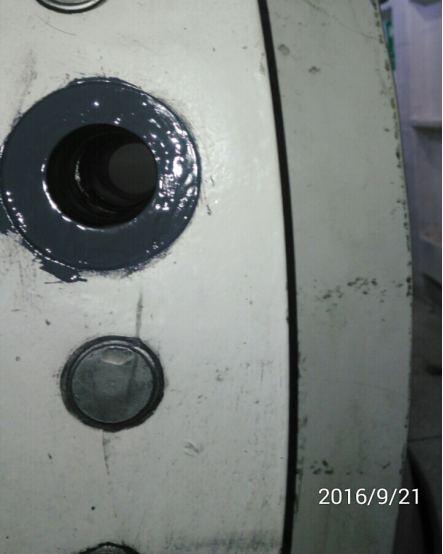 這次要解決的是風電機組上一顆直徑36mm的滑絲螺紋孔。根據(jù)洛陽信成技術(shù)團隊制定的方案,劉向前此次主要任務是去除該螺紋孔滑絲螺紋,擴成的39mm光孔;并對不規(guī)則的端面(輪轂側(cè))進行锪平處理,以便于安裝新的M36雙頭螺栓。