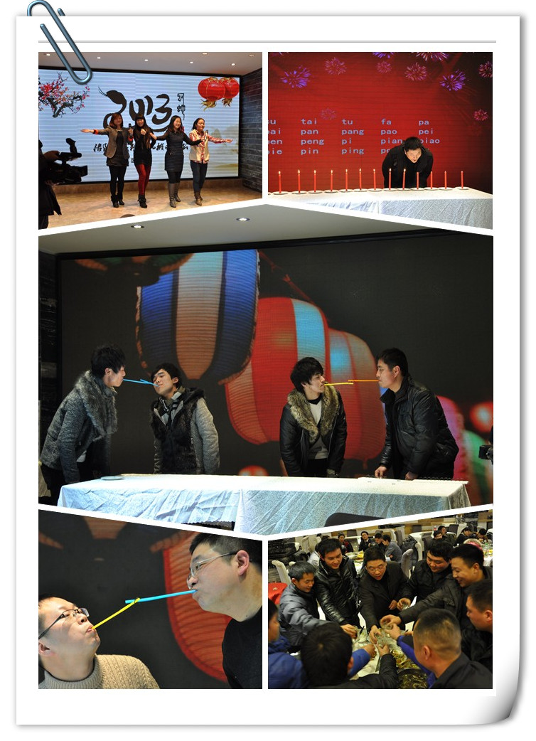 歡聲笑語賀新春,歡聚一堂迎新年。本次團拜會上,銷售部員工紛紛登臺亮相,一展風采:《三句半》在歡笑聲中總結(jié)工作、生活中的點點滴滴,發(fā)人深省;一曲《滾滾長江東逝水》,震撼全場,唱不盡英雄氣概;游戲環(huán)節(jié)中,全體員工及家屬躍躍欲試,現(xiàn)場氣氛熱烈,其樂融融。嘉賓亦是爭先恐后盡展歌喉,將全場氣氛推向***。不間斷的抽獎環(huán)節(jié)更是錦上添花,現(xiàn)場high到極點。