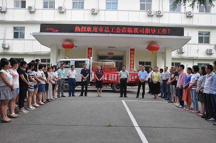 7月13日上午,洛陽市總工會領(lǐng)導(dǎo)王越華、洛陽市老城區(qū)工會主任杜學(xué)禮、西關(guān)辦事處黨工委書記王逢偉、西關(guān)辦事處黨工委副書記紀(jì)委書記李純帶領(lǐng)工會干部職工,帶著價值數(shù)千元的解暑水果、飲料、藿香正氣水等物品,來到洛陽信成精密機(jī)械有限公司開展夏季“送清涼”活動。