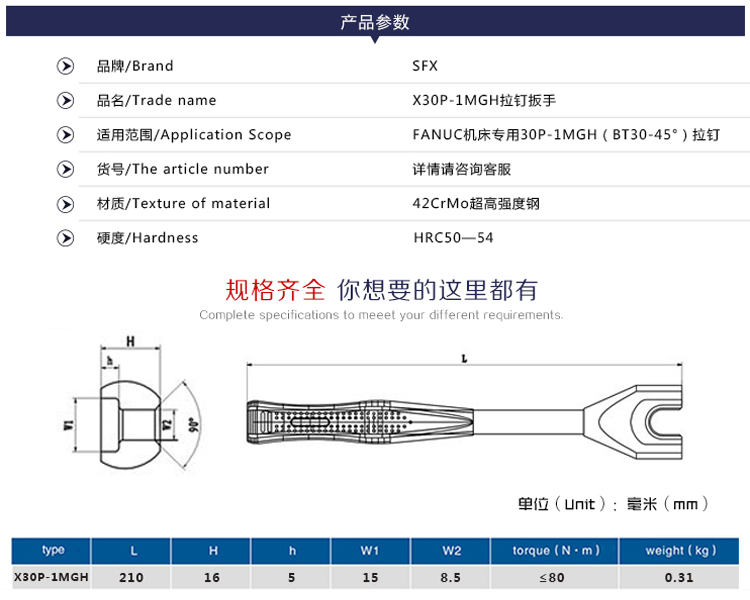 拉釘扳手X30P-1MGH(631865-30)刀柄周邊工具 簡介:適用于FANUC機床專用30P-1MGH(BT30-45°)拉釘 咨詢熱線:400-6700-379 留言給我們 產(chǎn)品詳細 上一篇:HSK冷卻液套管63 2880-63/100 下一篇:滾針螺母扳手NSG35 632754-35