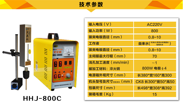 - 簡介:HHJ-800C便捷式火花機(jī)功率800W,可設(shè)定深度,盲孔取絲錐時不需人工看守,自動返回并報警,而且有單獨的工具包方便收納。